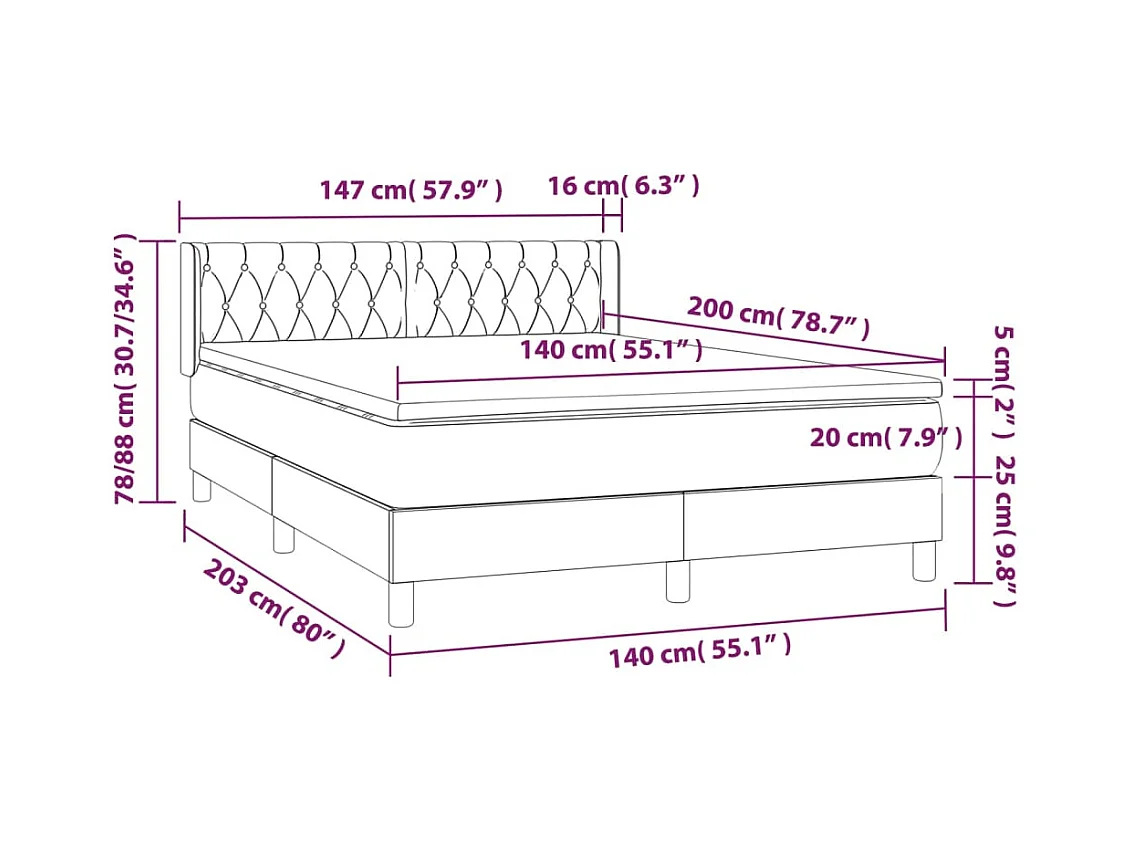 Sommier à lattes de lit avec matelas Noir 140x200 Velours