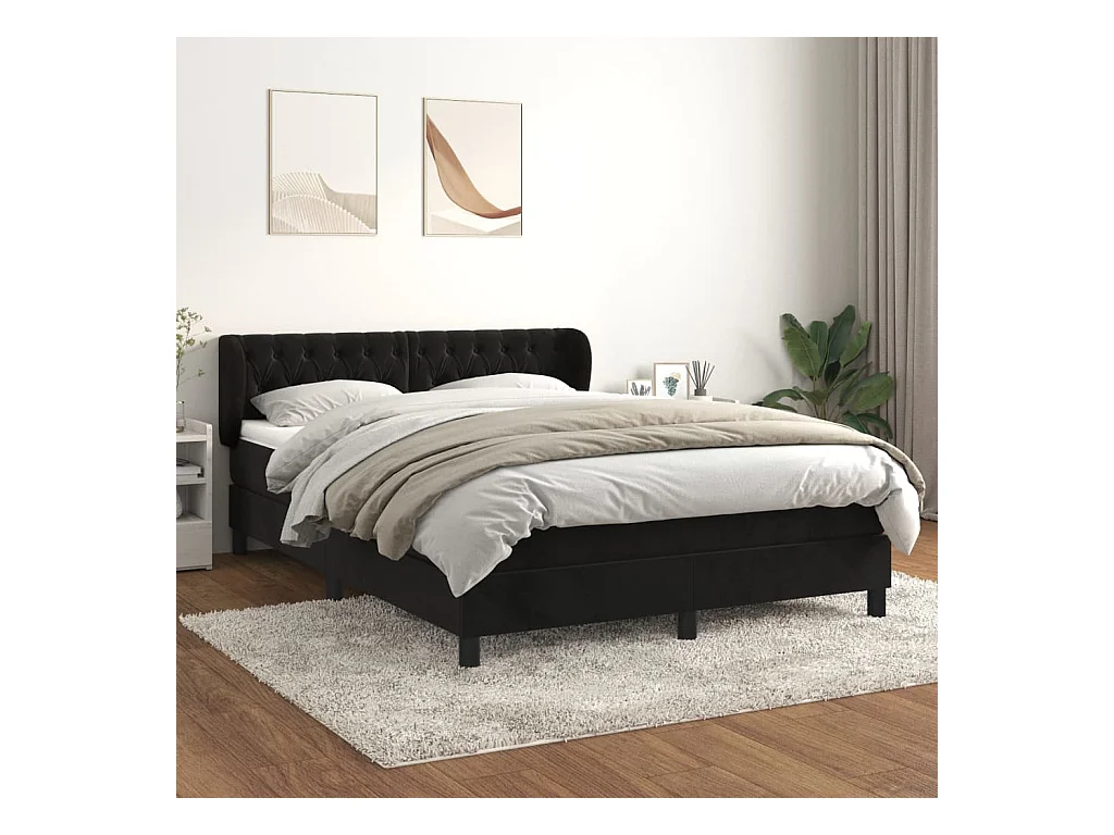 Sommier à lattes de lit avec matelas Noir 140x200 Velours
