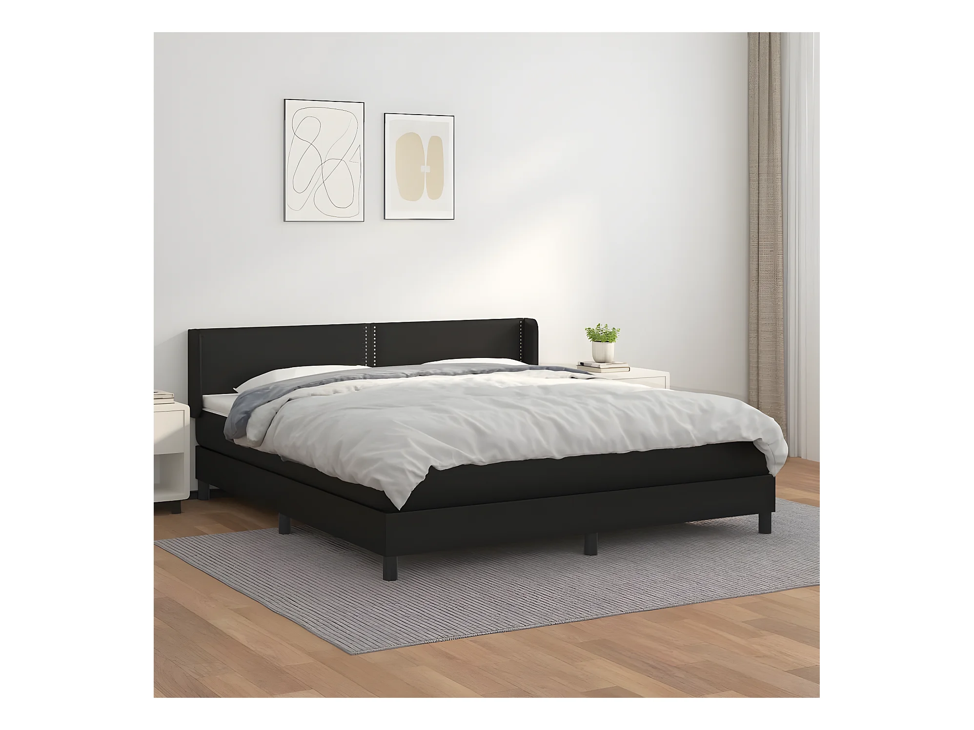 Sommier à lattes de lit avec matelas Noir 160x200