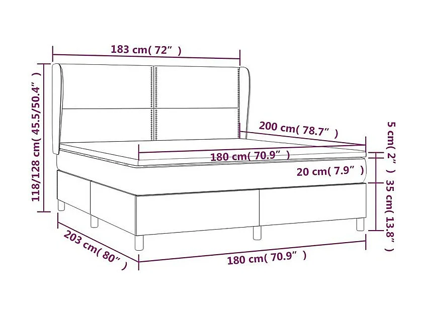 Sommier à lattes de lit avec matelas Noir 180x200 Tissu