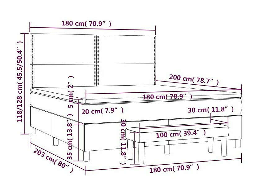 Sommier à lattes de lit avec matelas Noir 180x200 Tissu