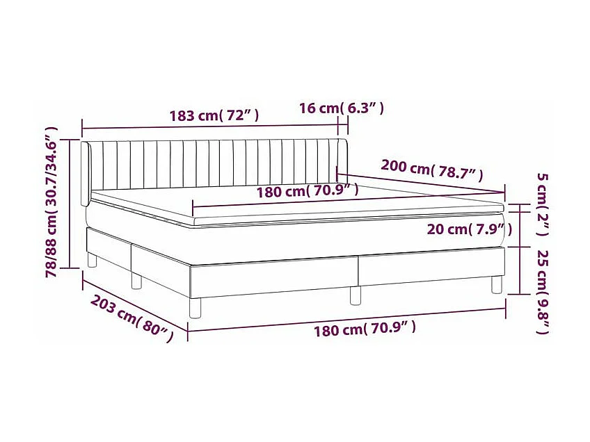 Sommier à lattes de lit avec matelas Noir 180x200 Velours