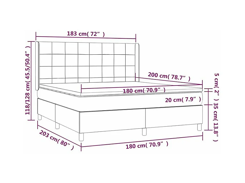 Sommier à lattes de lit avec matelas Noir 180x200 Velours