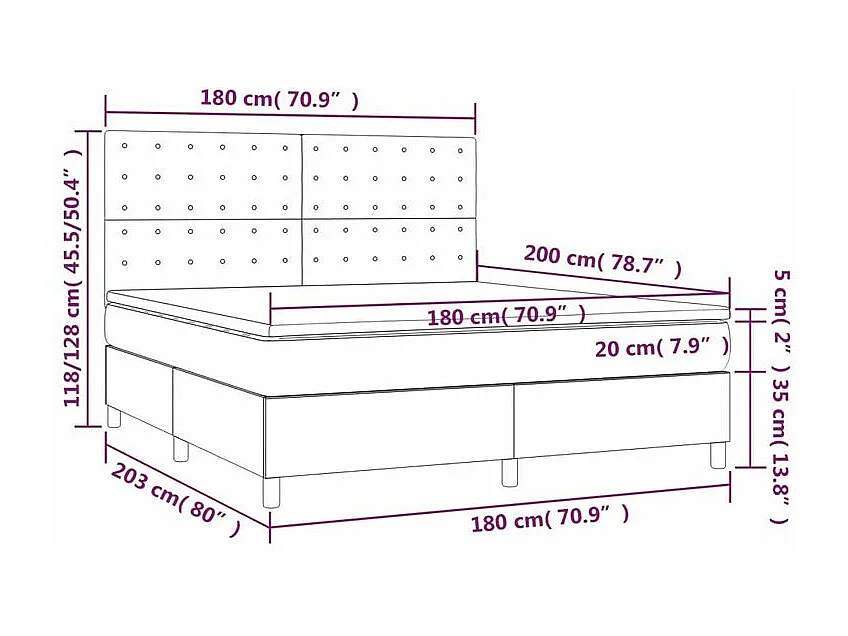 Sommier à lattes de lit avec matelas Noir 180x200 Velours