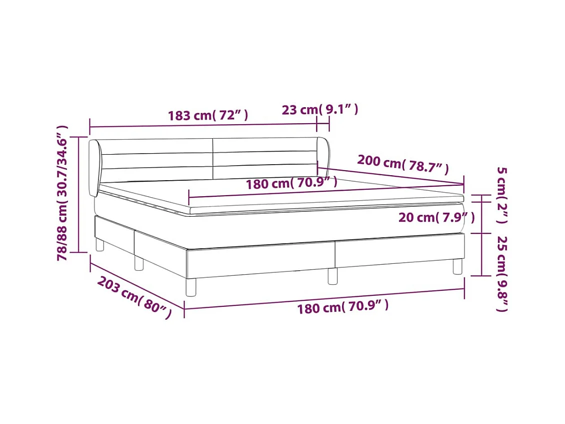 Sommier à lattes de lit avec matelas Noir 180x200 Velours