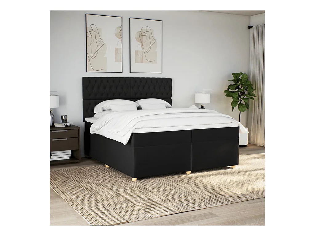 Sommier à lattes de lit avec matelas Noir 200x200 cm Tissu
