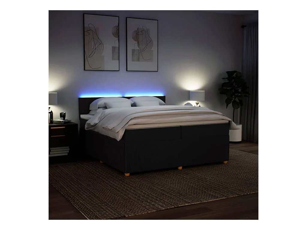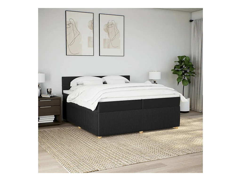 Sommier à lattes de lit avec matelas Noir 200x200 cm Tissu