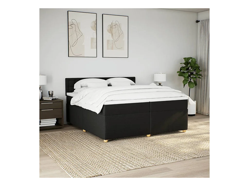 Sommier à lattes de lit avec matelas Noir 200x200 cm Tissu