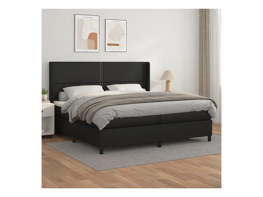 Sommier à lattes de lit avec matelas Noir 200x200 Similicuir