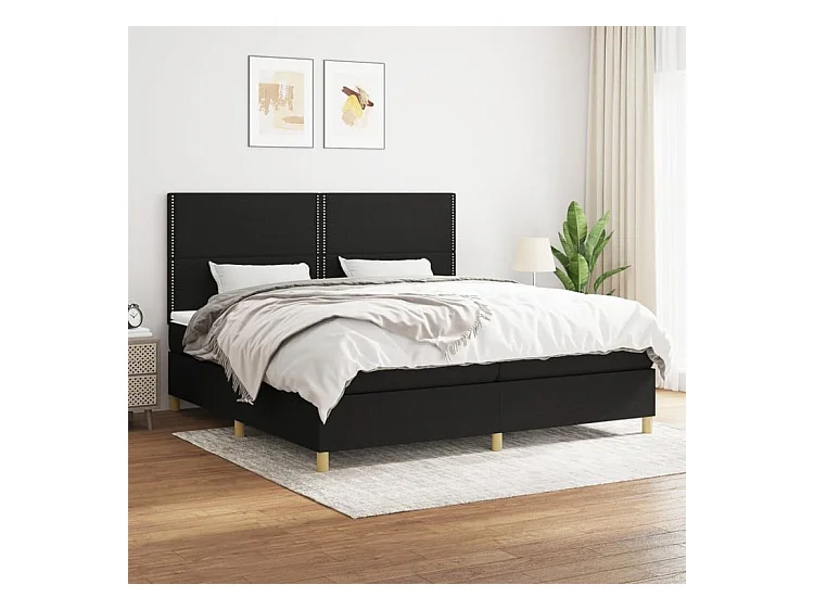 Sommier à lattes de lit avec matelas Noir 200x200 Tissu
