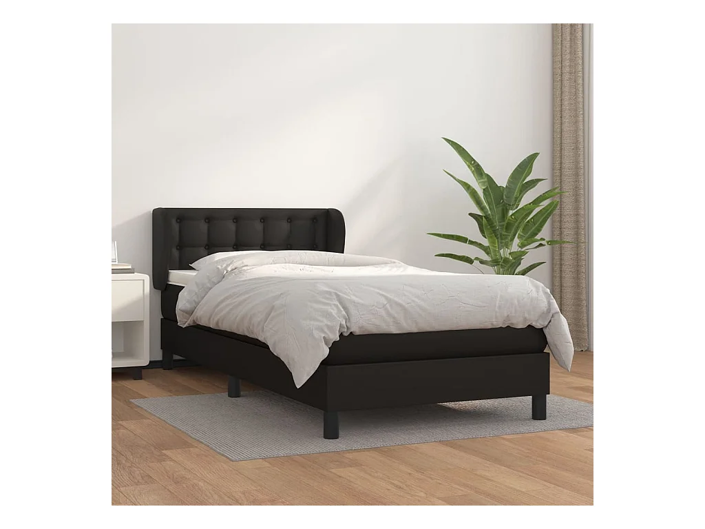 Sommier à lattes de lit avec matelas Noir 90x190 Similicuir