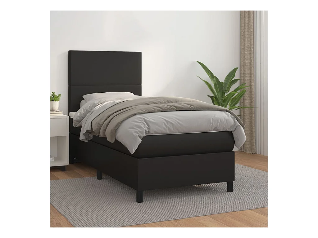 Sommier à lattes de lit avec matelas Noir 90x190 Similicuir