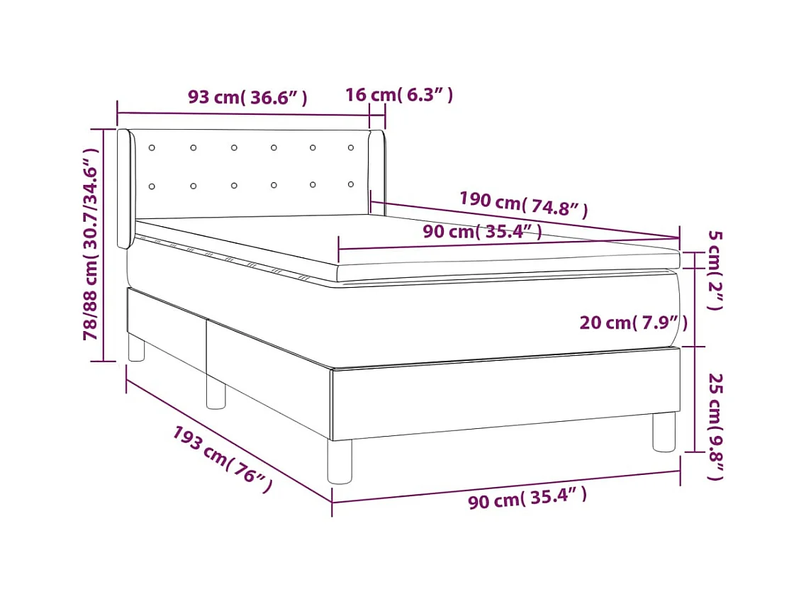 Sommier à lattes de lit avec matelas Noir 90x190 Tissu