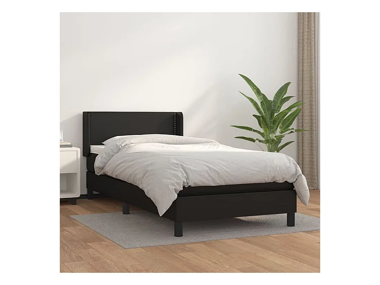 Sommier à lattes de lit avec matelas Noir 90x200 Similicuir