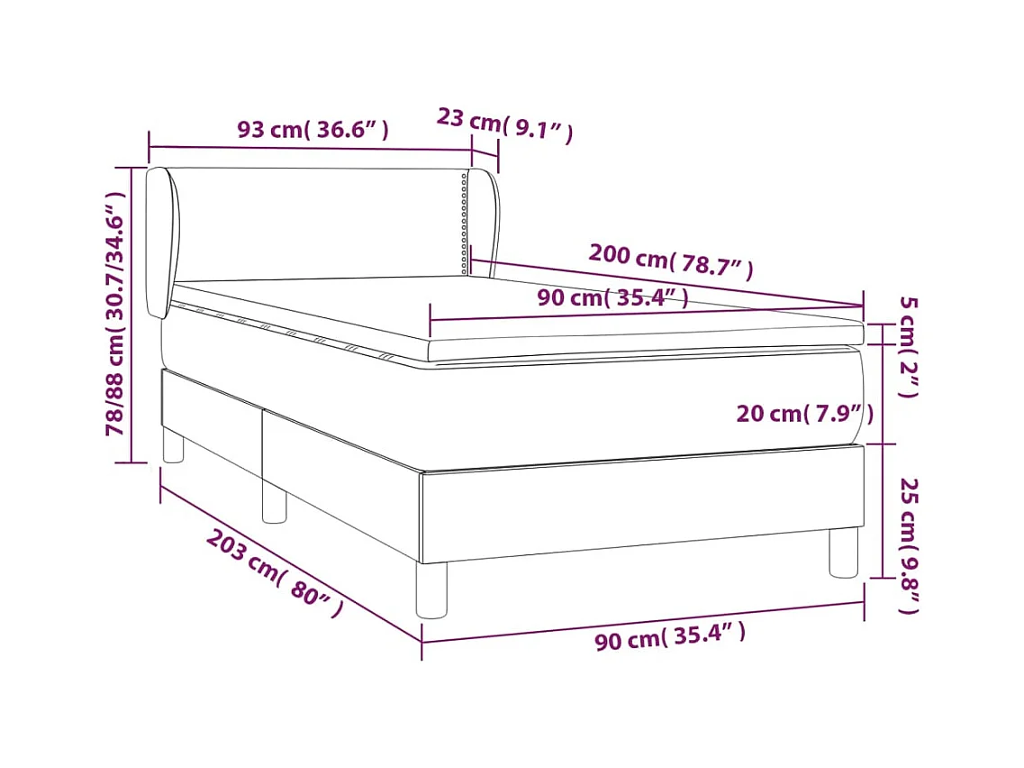 Sommier à lattes de lit avec matelas Noir 90x200 Tissu