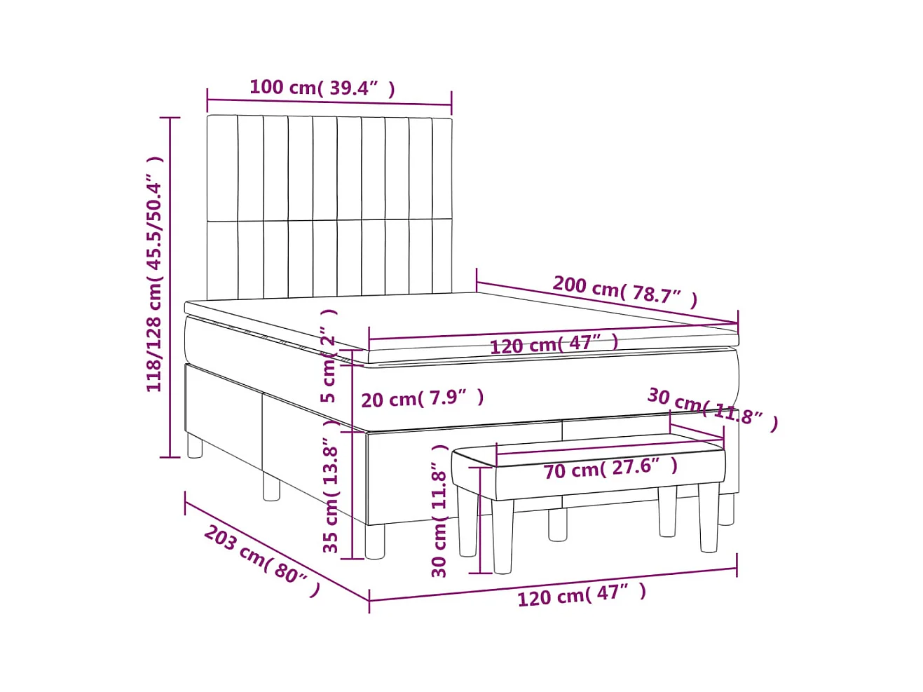 Sommier à lattes de lit avec matelas Rose 120x200 Velours