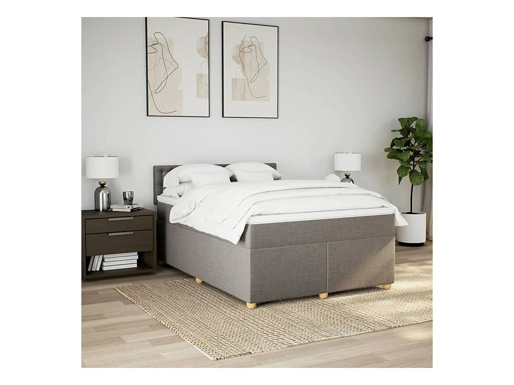 Sommier à lattes de lit avec matelas Taupe 140x190 cm Tissu
