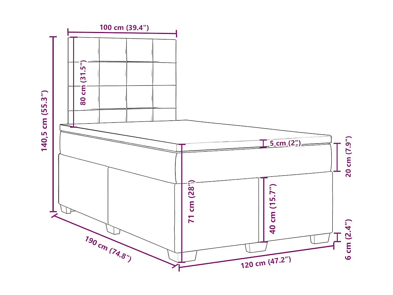 Sommier à lattes de lit et matelas bleu 120x190 cm velours