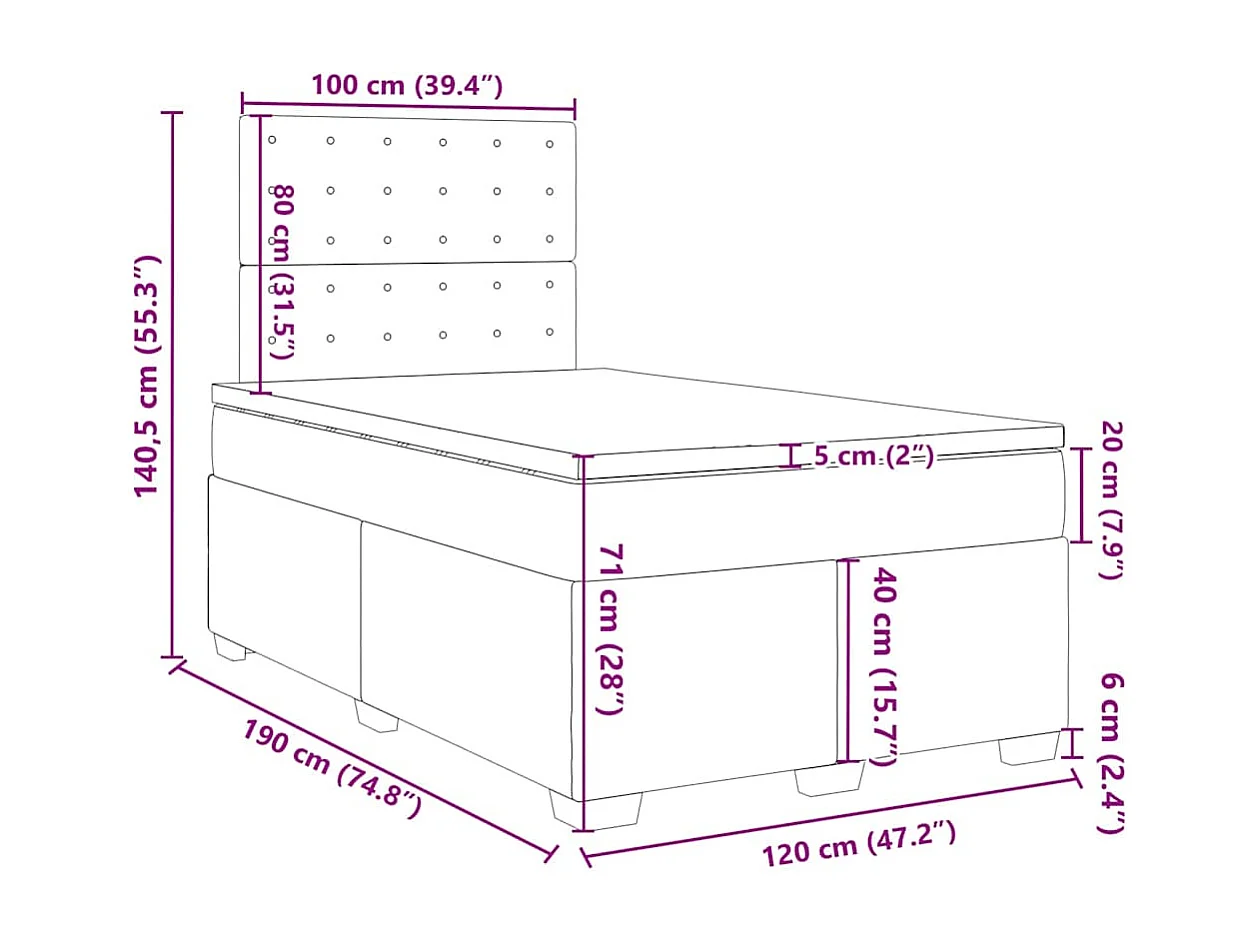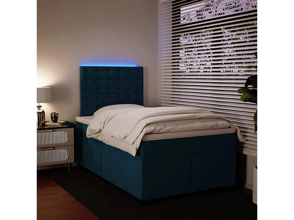 Sommier à lattes de lit et matelas bleu 120x190 cm velours