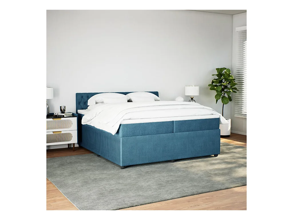 Sommier à lattes de lit et matelas Bleu 200x200 cm velours