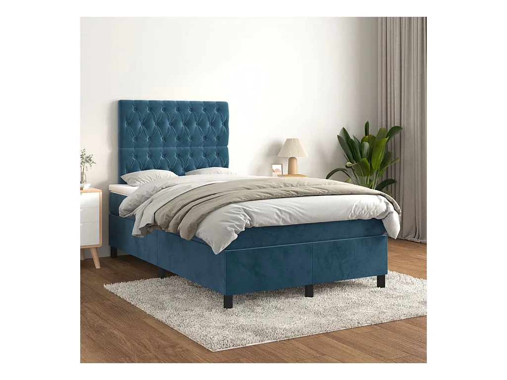 Sommier à lattes de lit et matelas bleu foncé 120x190 velours