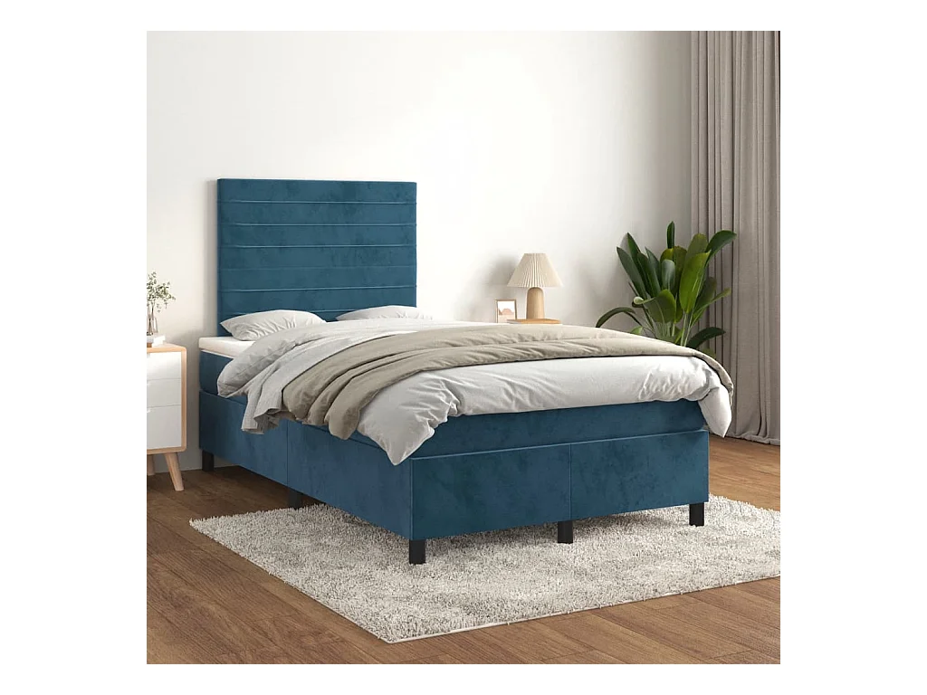 Sommier à lattes de lit et matelas bleu foncé 120x190 velours