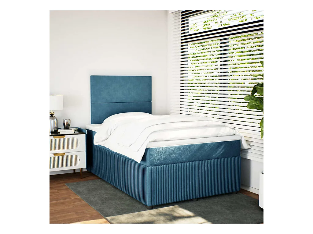 Sommier à lattes de lit et matelas Bleu foncé 120x200cm Velours