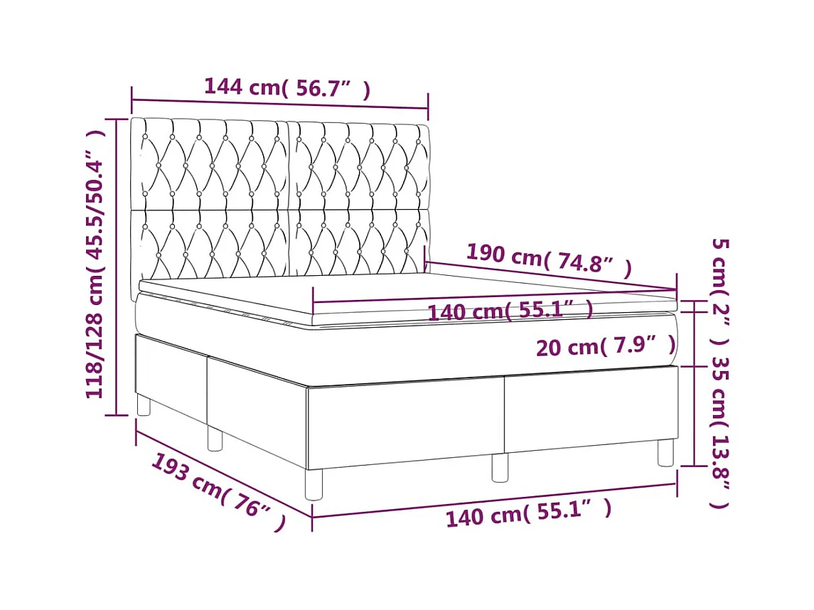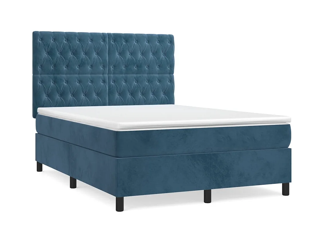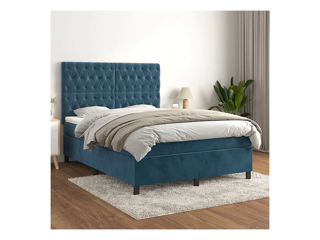 Sommier à lattes de lit et matelas Bleu foncé 140x190 Velours
