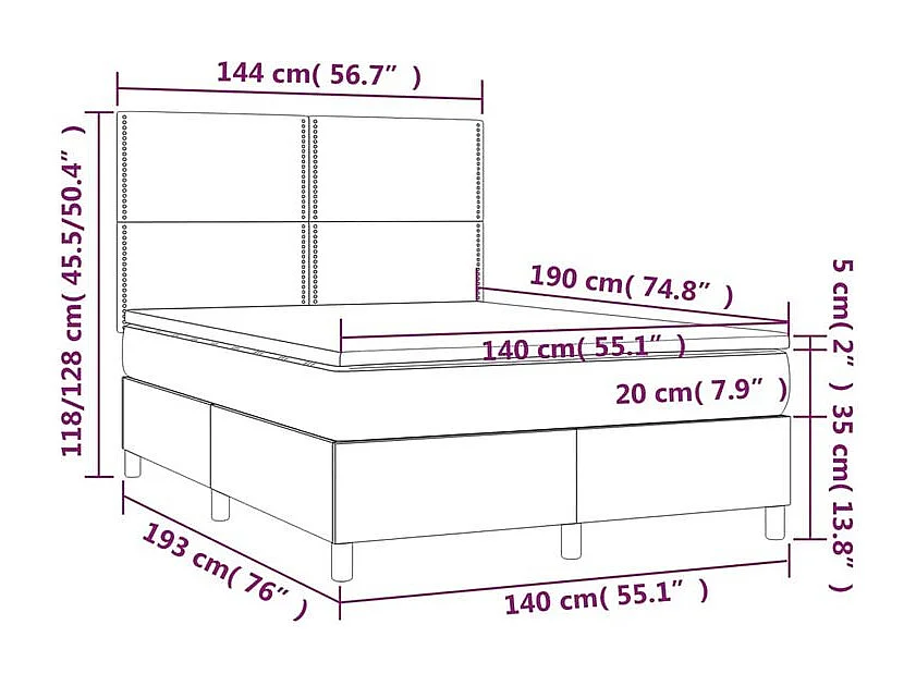 Sommier à lattes de lit et matelas Bleu foncé 140x190 Velours