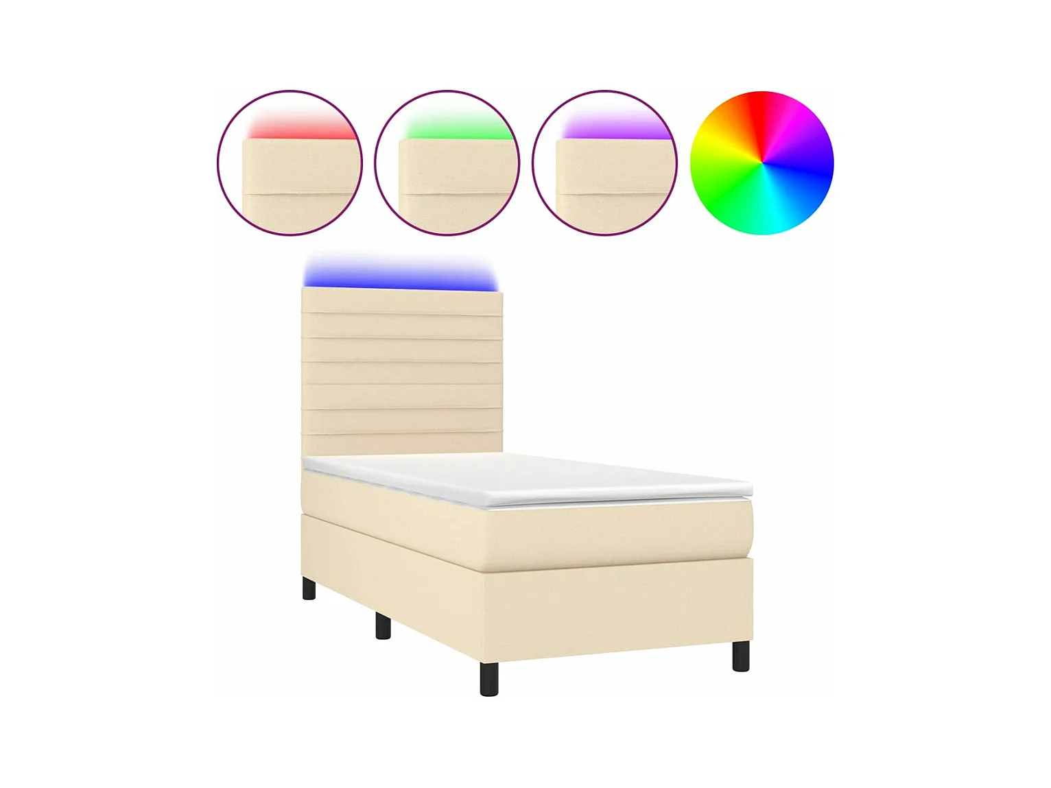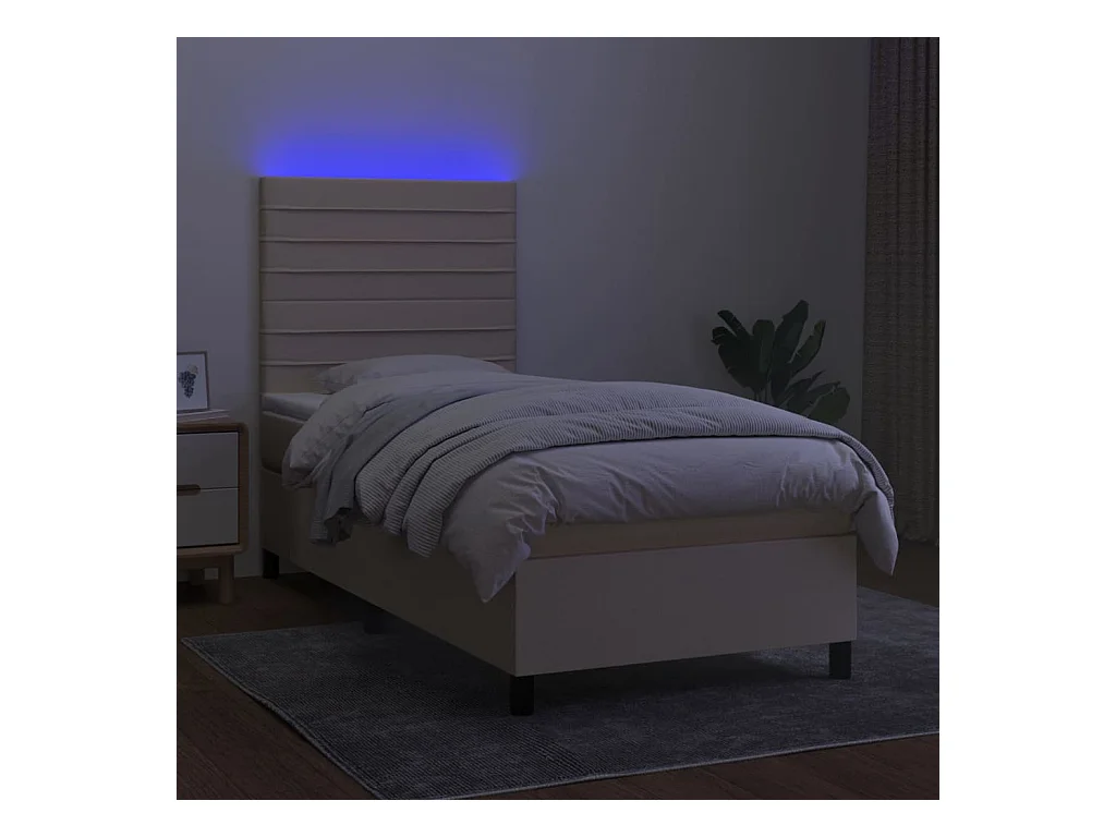 Sommier à lattes de lit et matelas et LED Crème 80x200 cm Tissu