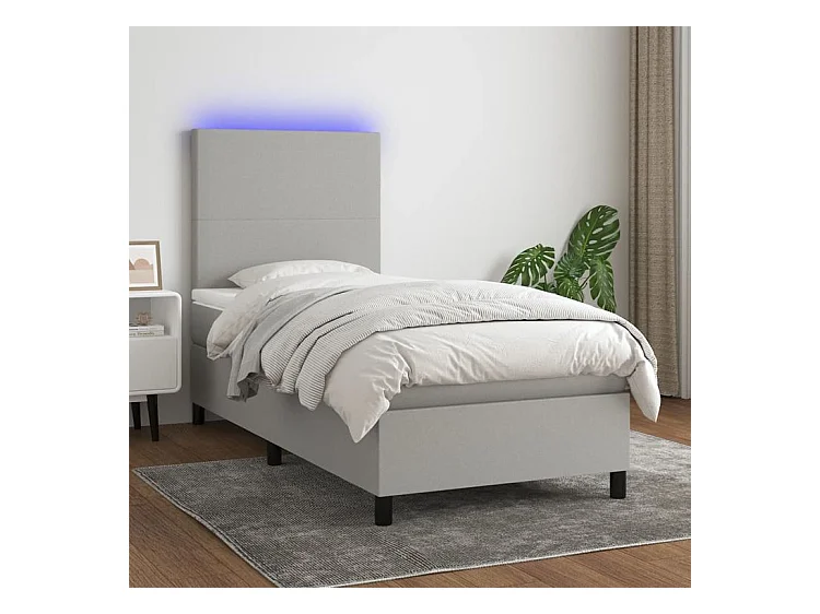 Sommier à lattes de lit et matelas et LED Gris clair 100x200