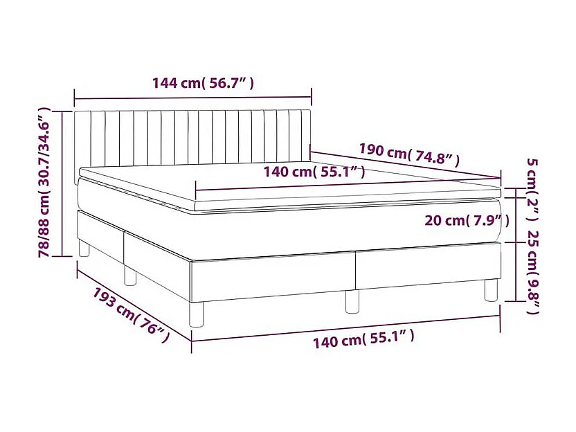 Sommier à lattes de lit et matelas et LED Gris clair 140x190