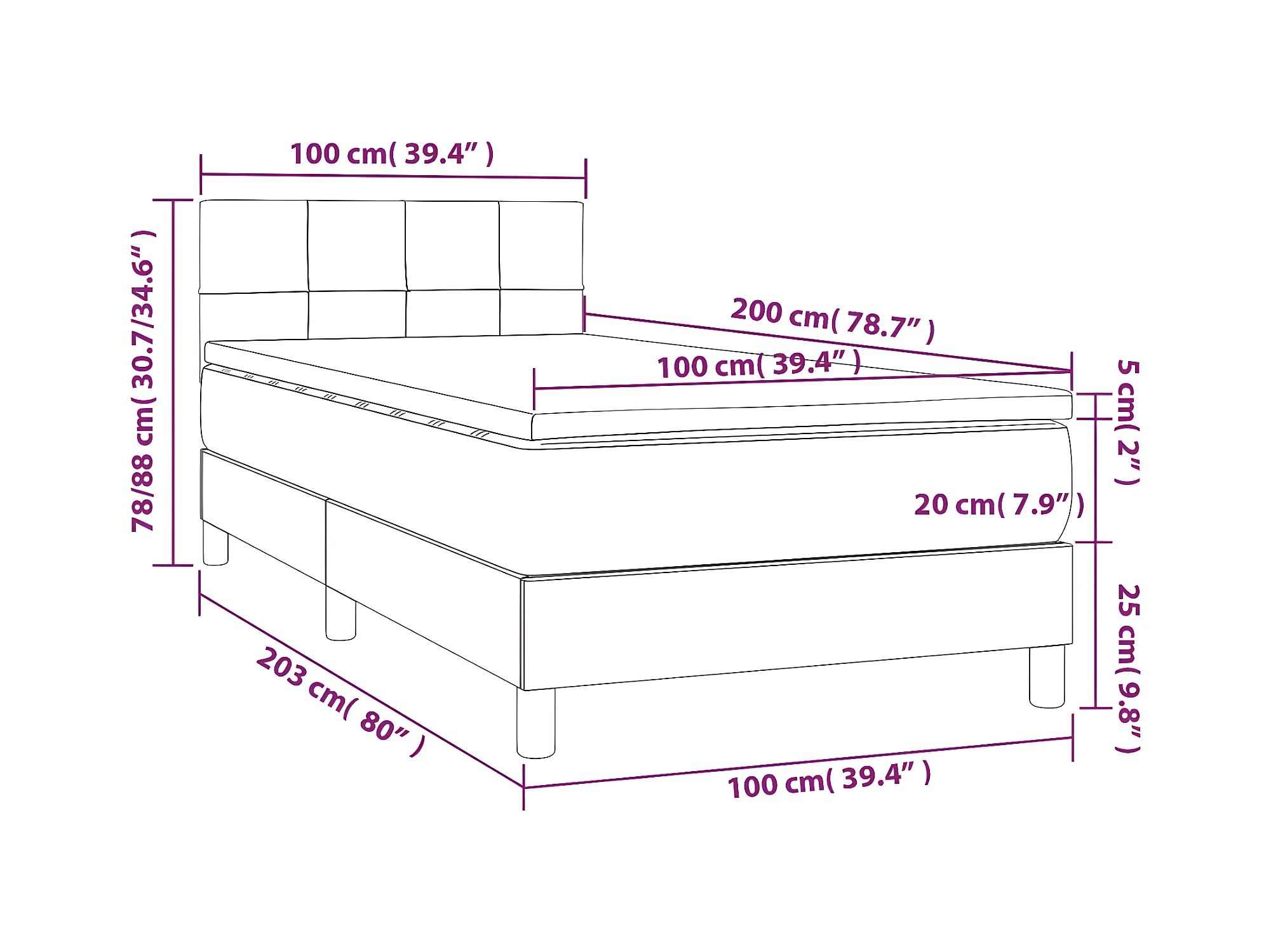 Sommier à lattes de lit et matelas et LED Gris foncé 100x200