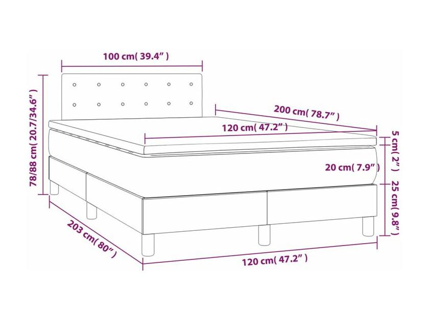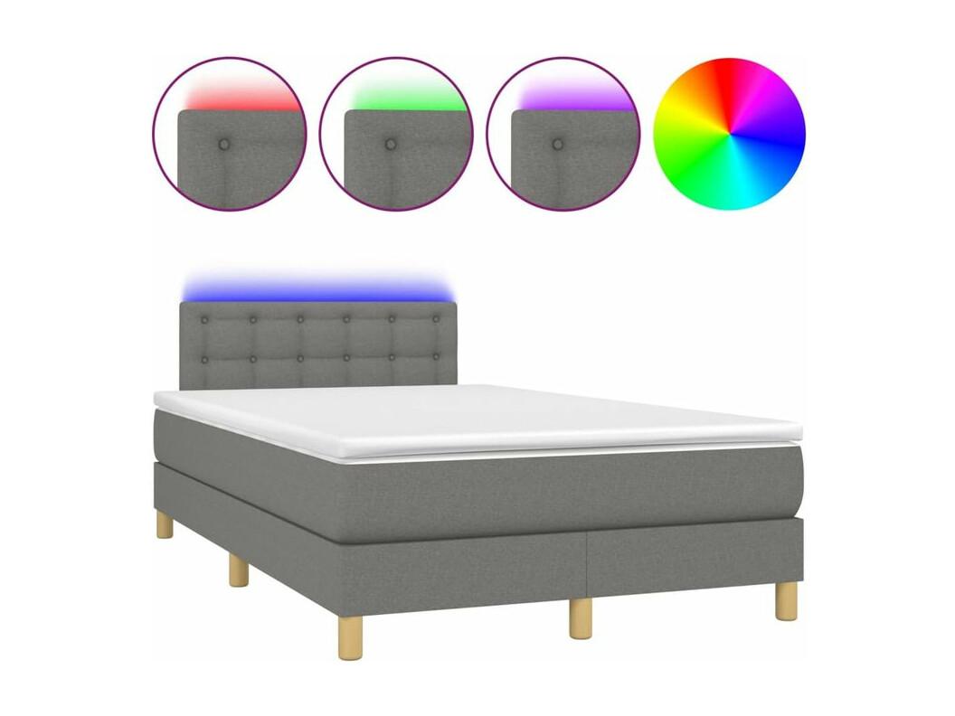 Sommier à lattes de lit et matelas et LED Gris foncé 120x200
