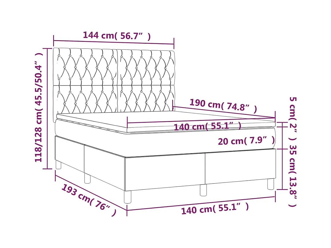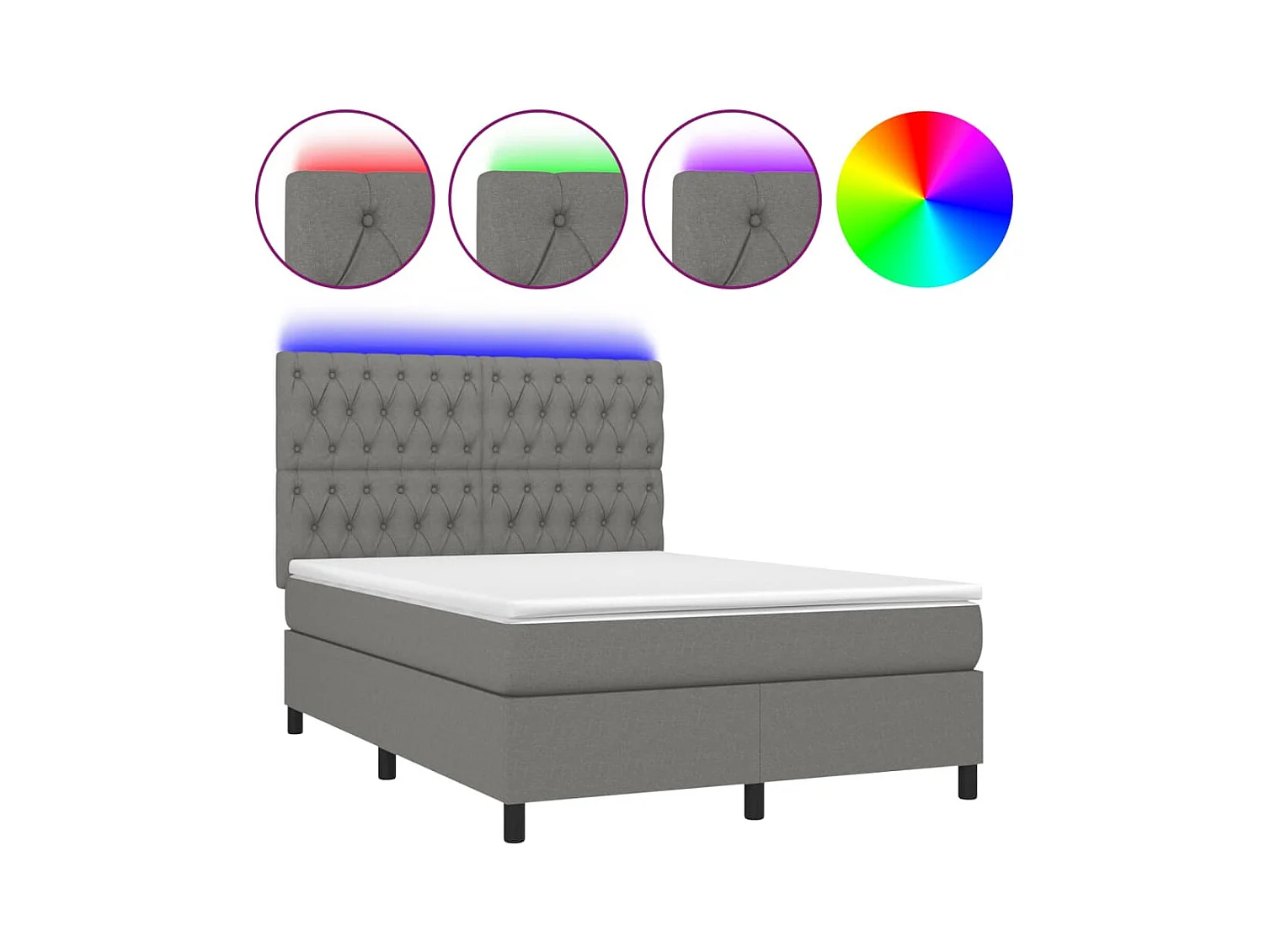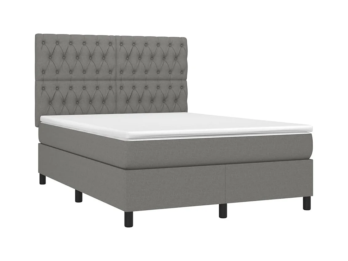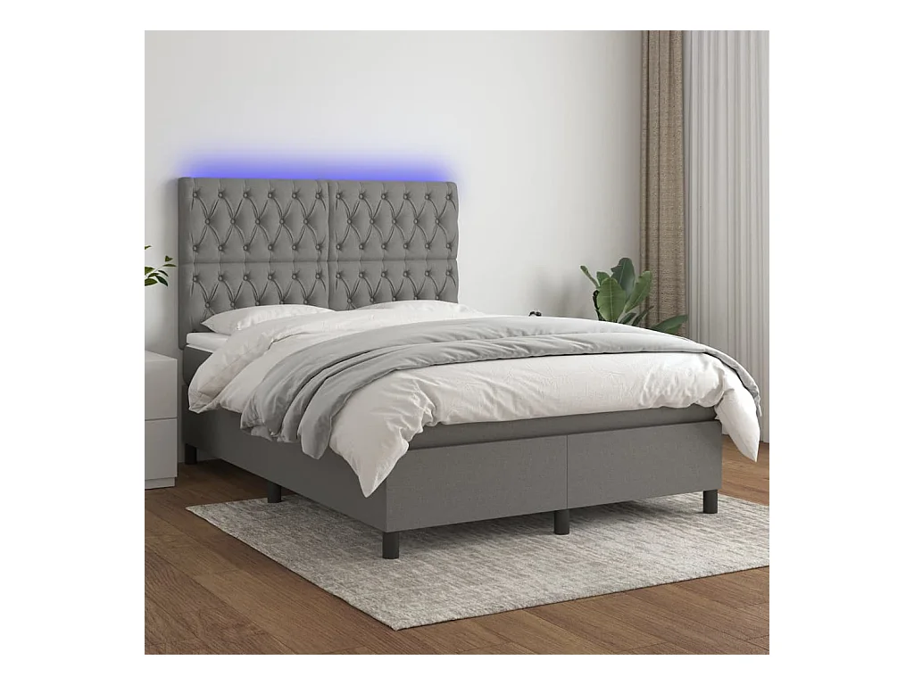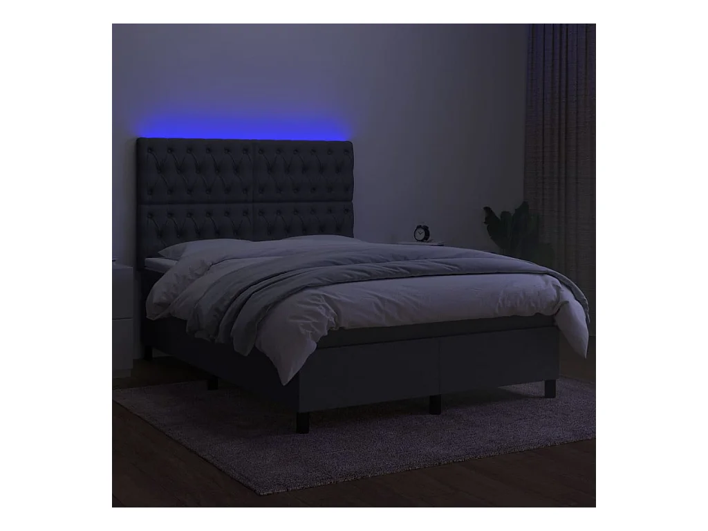 Sommier à lattes de lit et matelas et LED Gris foncé 140x190