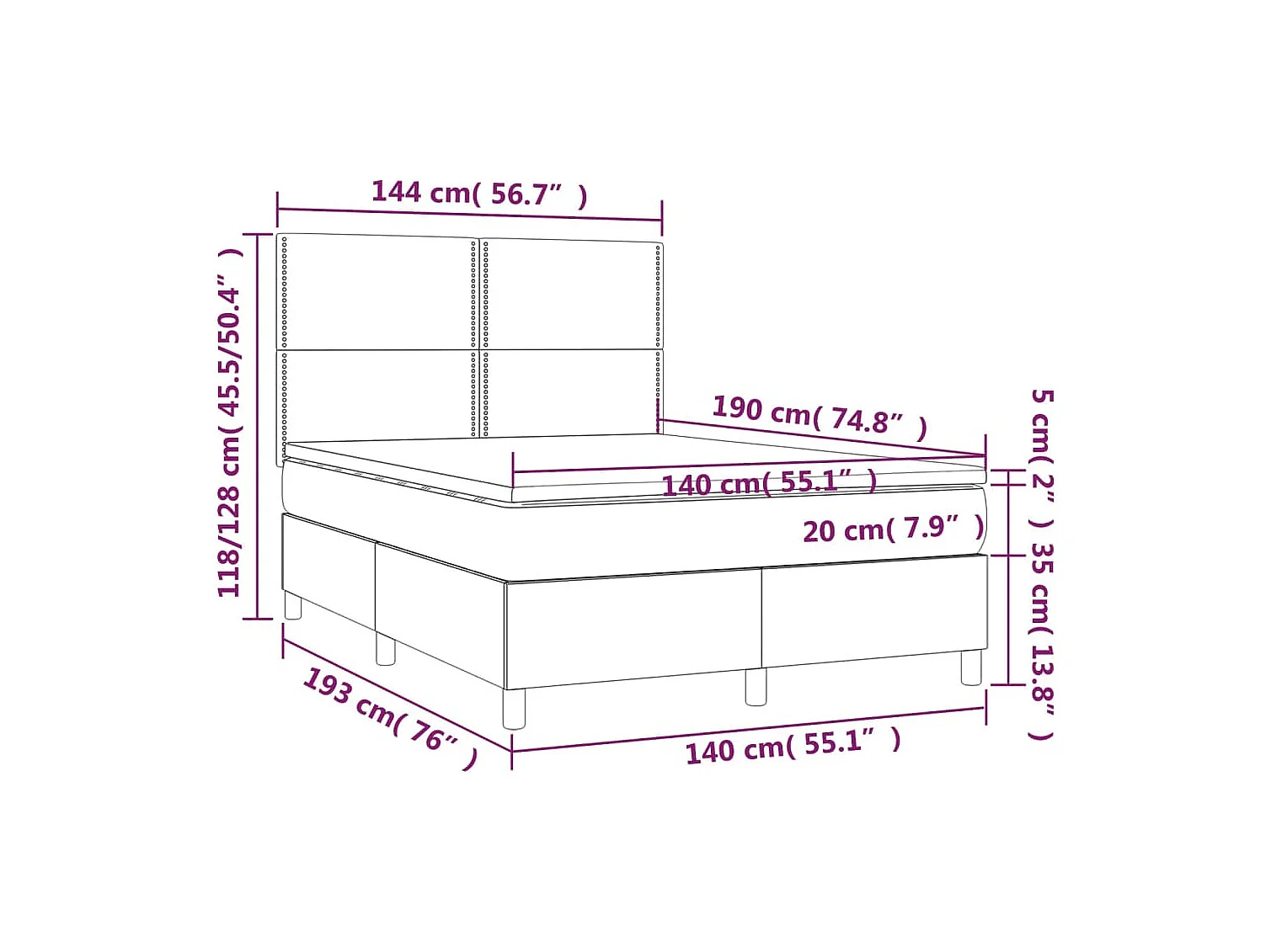 Sommier à lattes de lit et matelas et LED Gris foncé 140x190