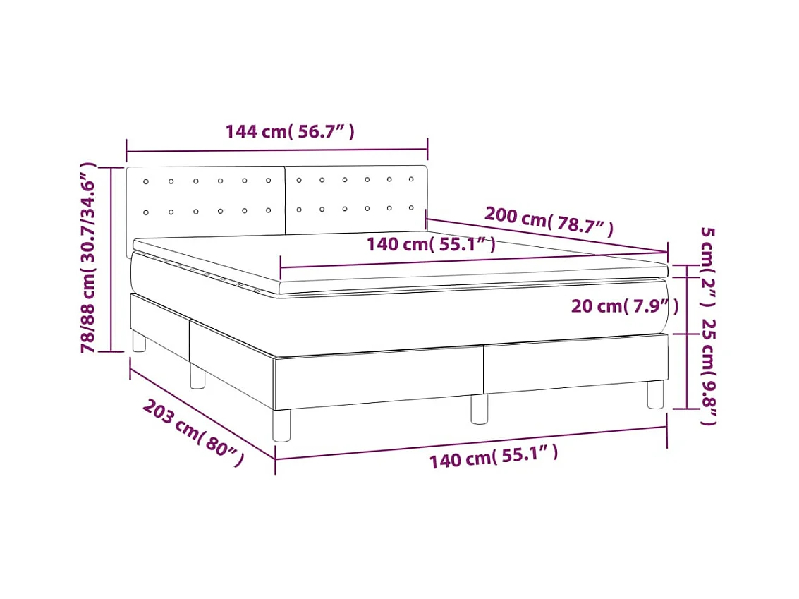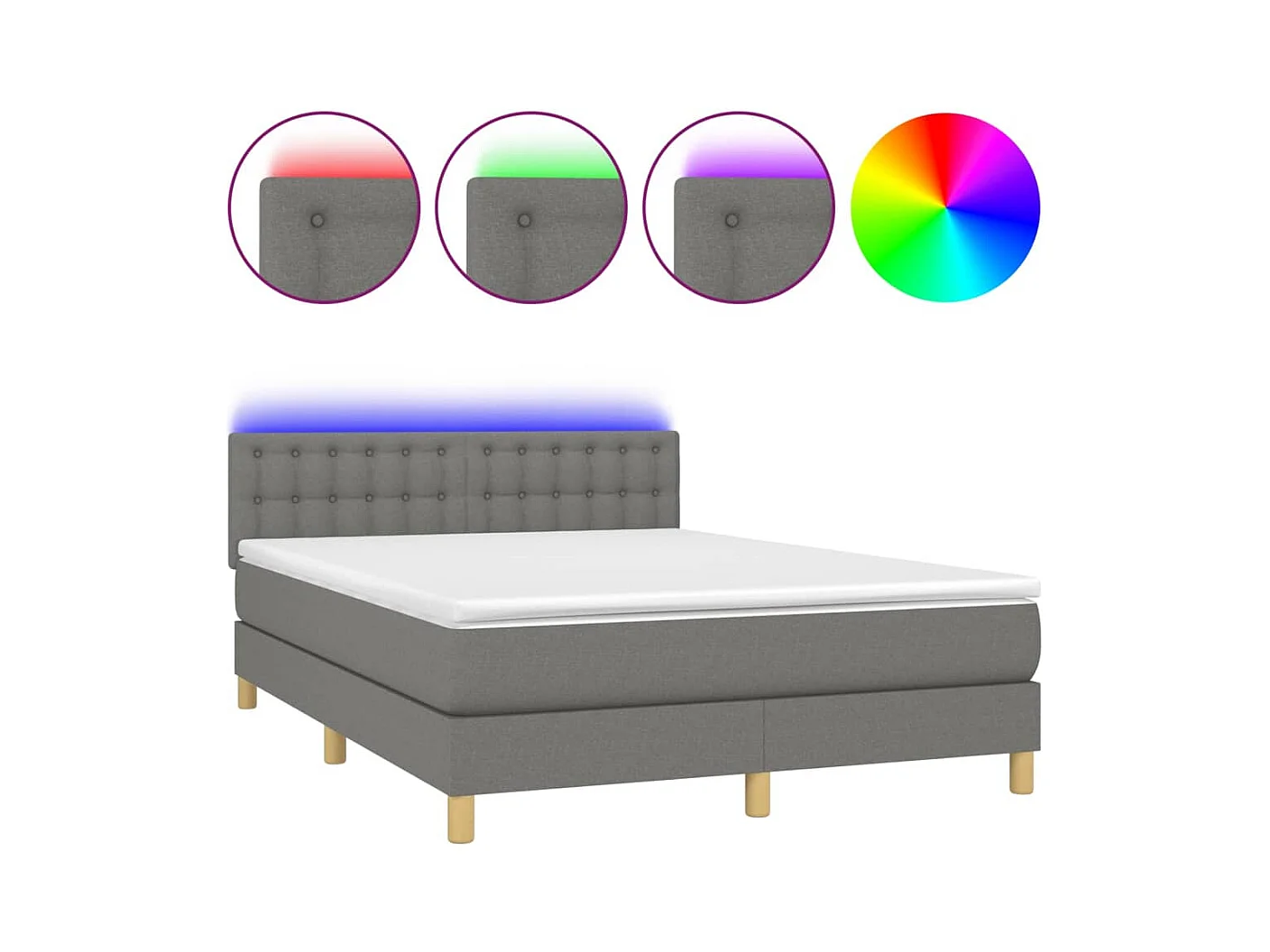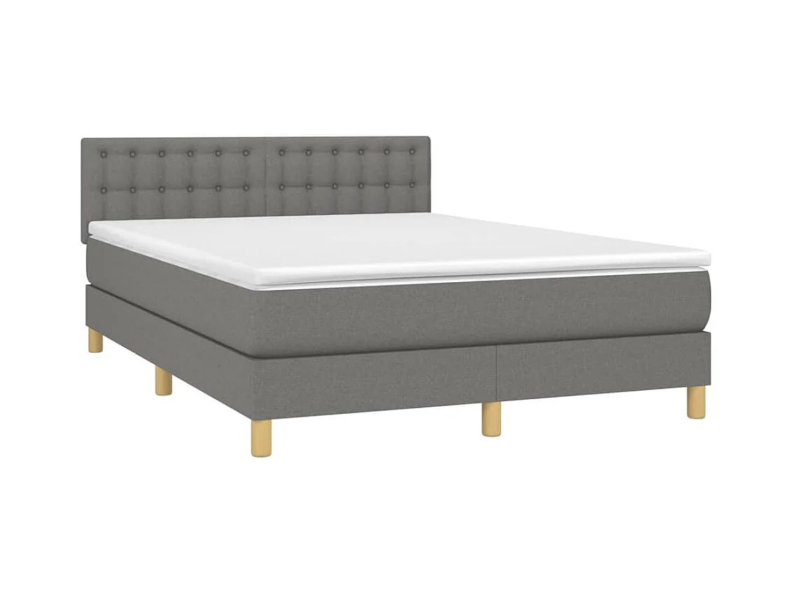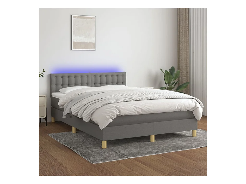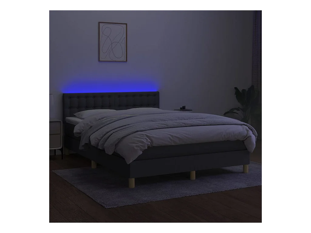 Sommier à lattes de lit et matelas et LED Gris foncé 140x200