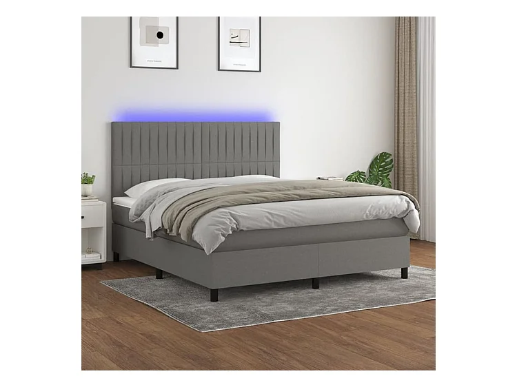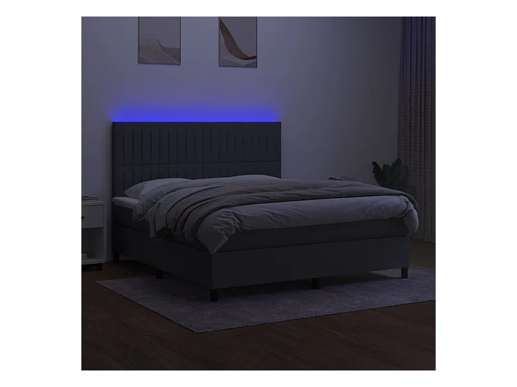 Sommier à lattes de lit et matelas et LED Gris foncé 160x200