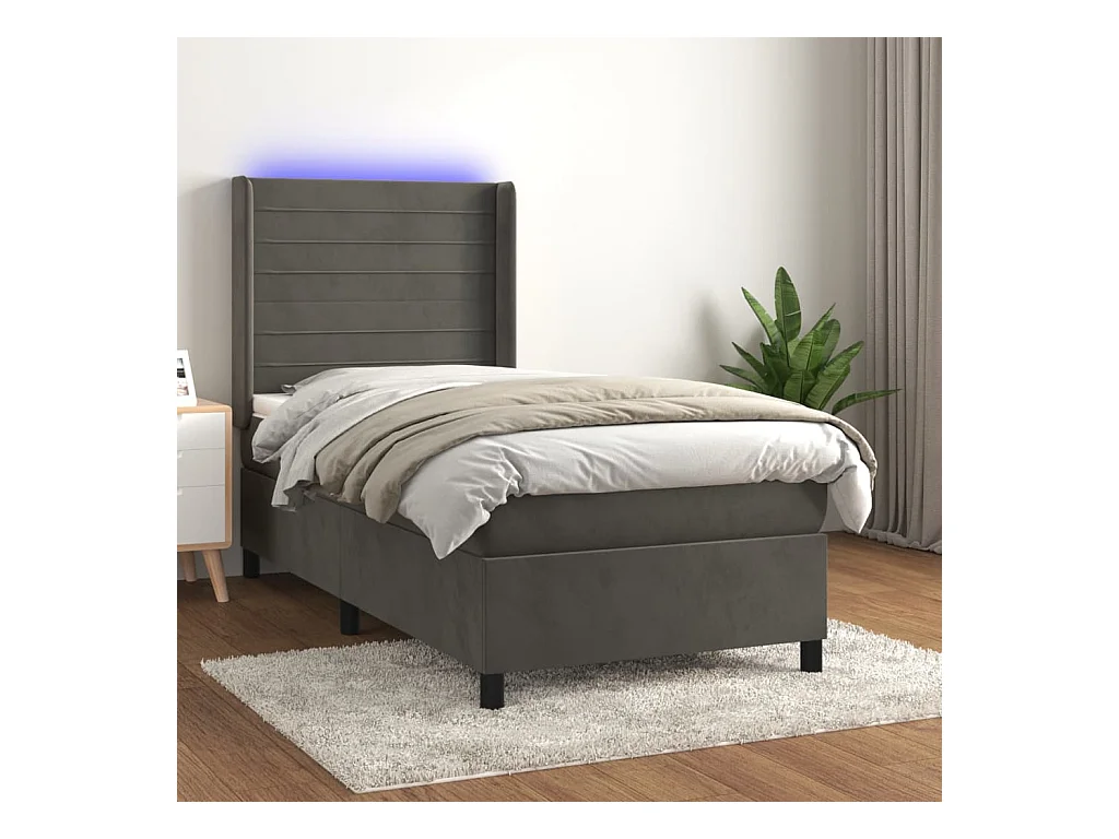 Sommier à lattes de lit et matelas et LED Gris foncé 90x200