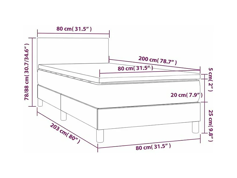 Sommier à lattes de lit et matelas et LED Marron foncé 80x200