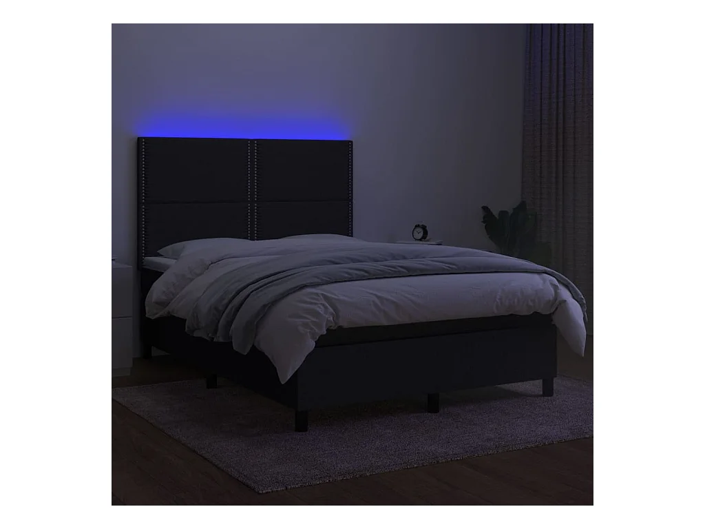 Sommier à lattes de lit et matelas et LED Noir 140x190 Tissu