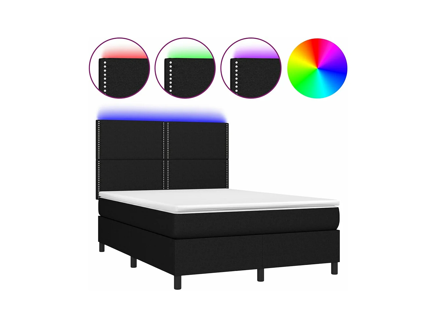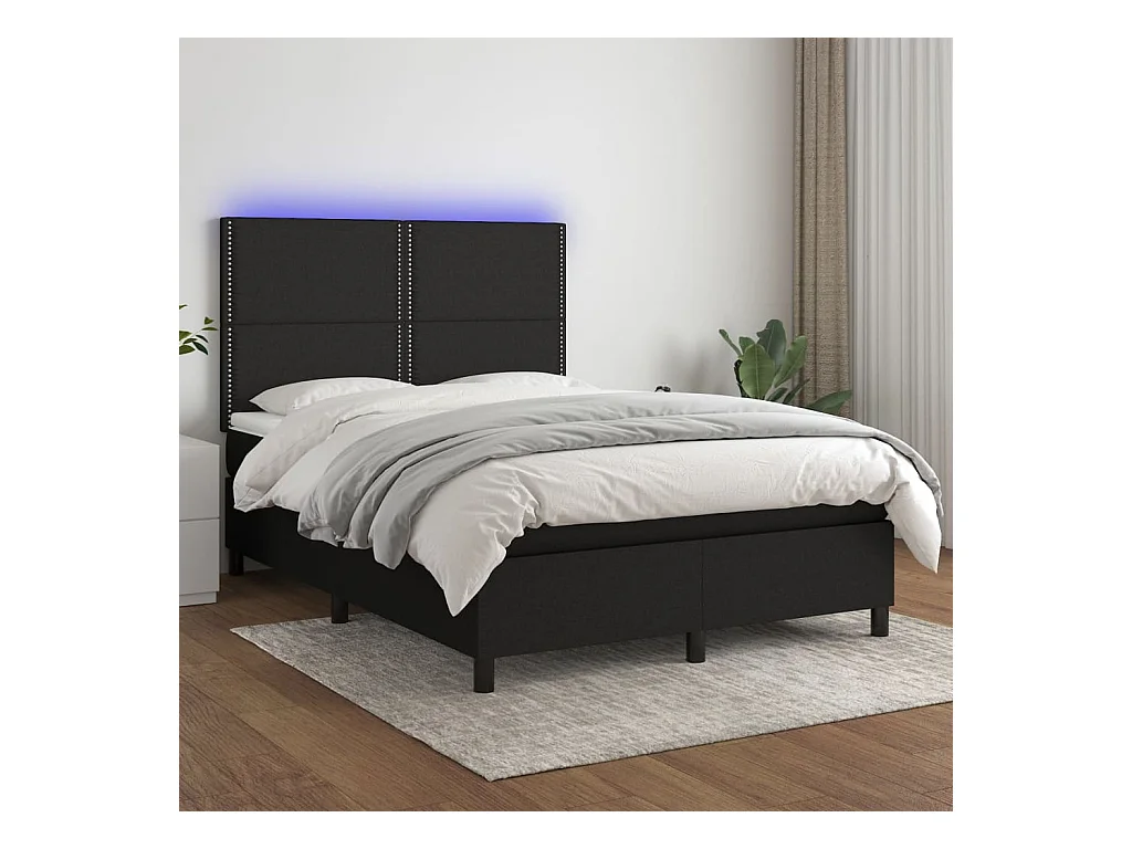 Sommier à lattes de lit et matelas et LED Noir 140x200 Tissu