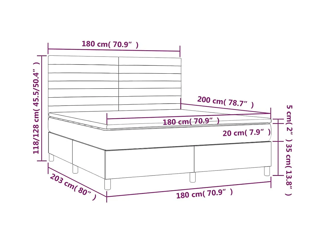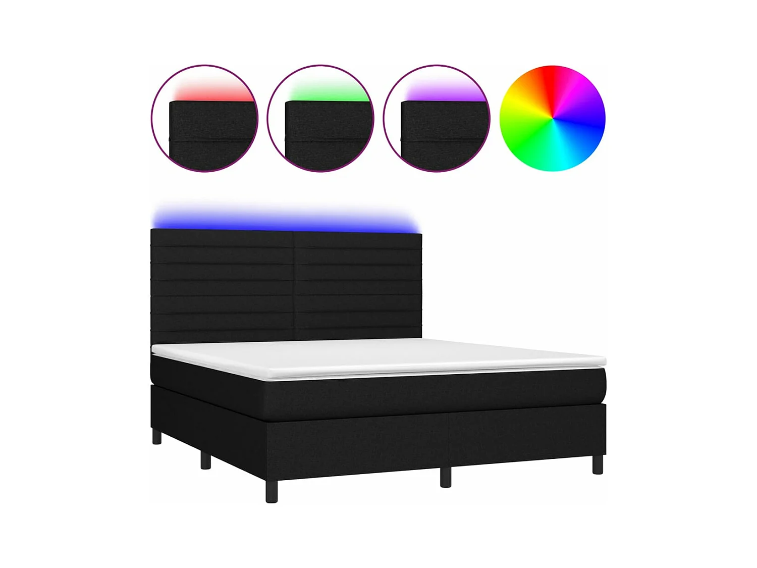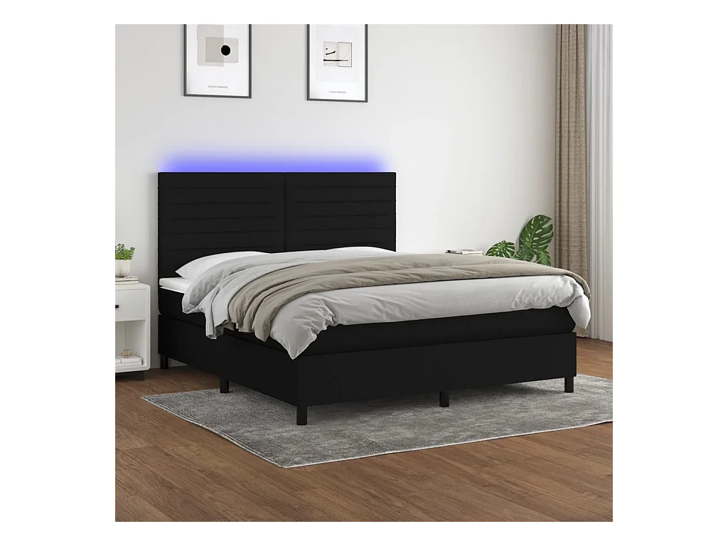 Sommier à lattes de lit et matelas et LED Noir 180x200 Tissu