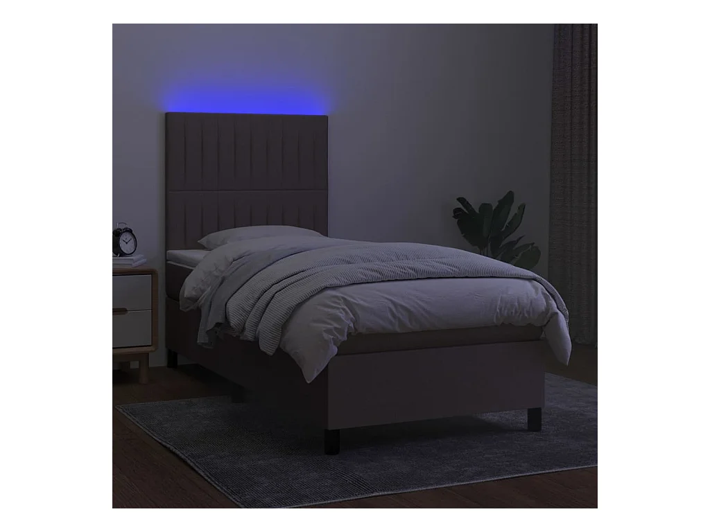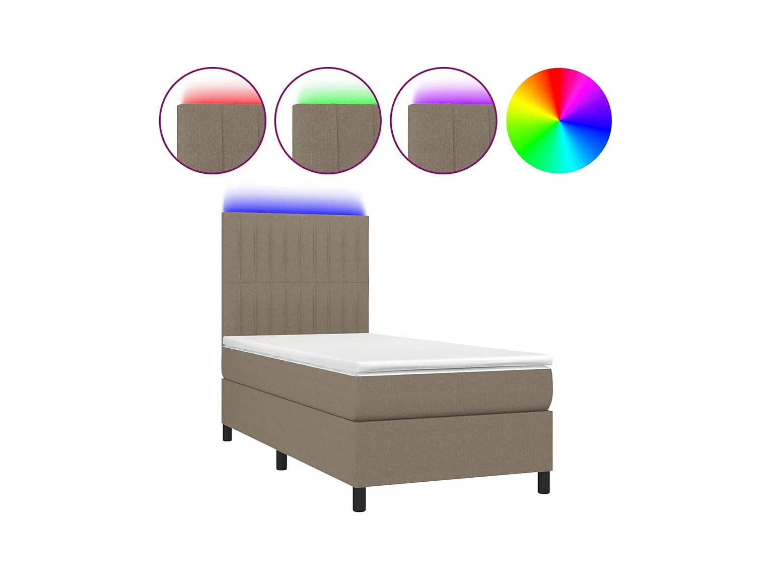 Sommier à lattes de lit et matelas et LED Taupe 100x200 Tissu