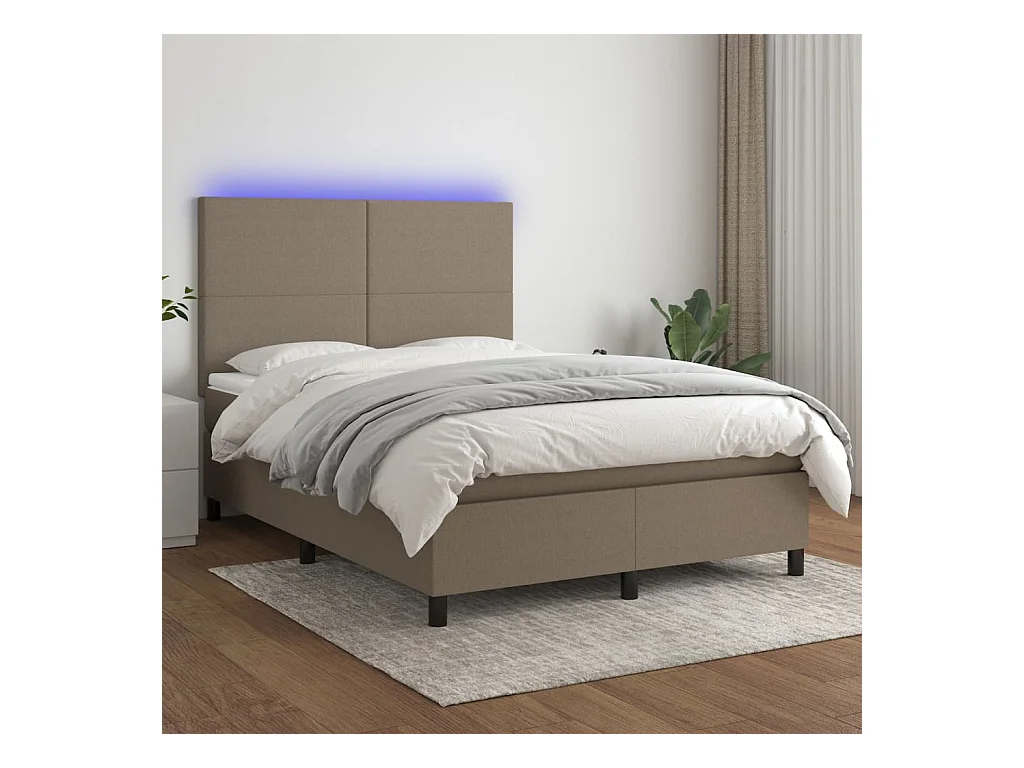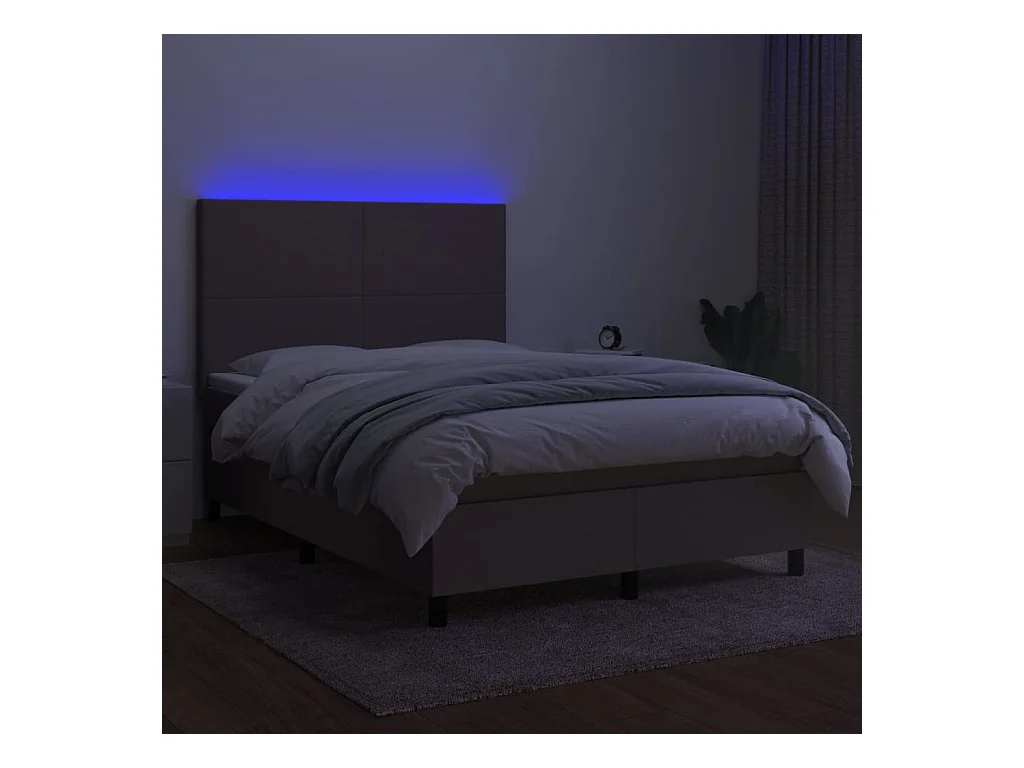 Sommier à lattes de lit et matelas et LED Taupe 140x190 Tissu