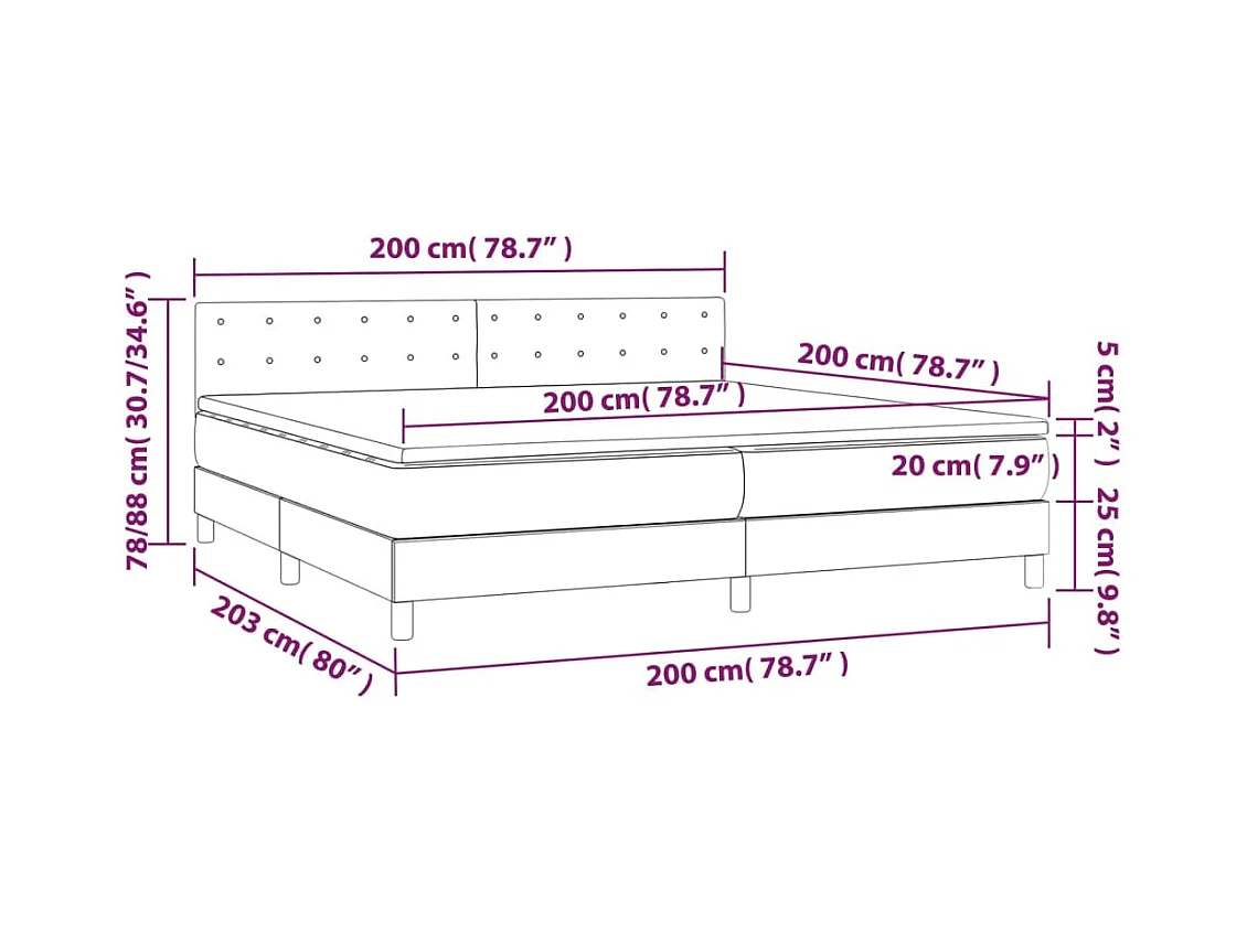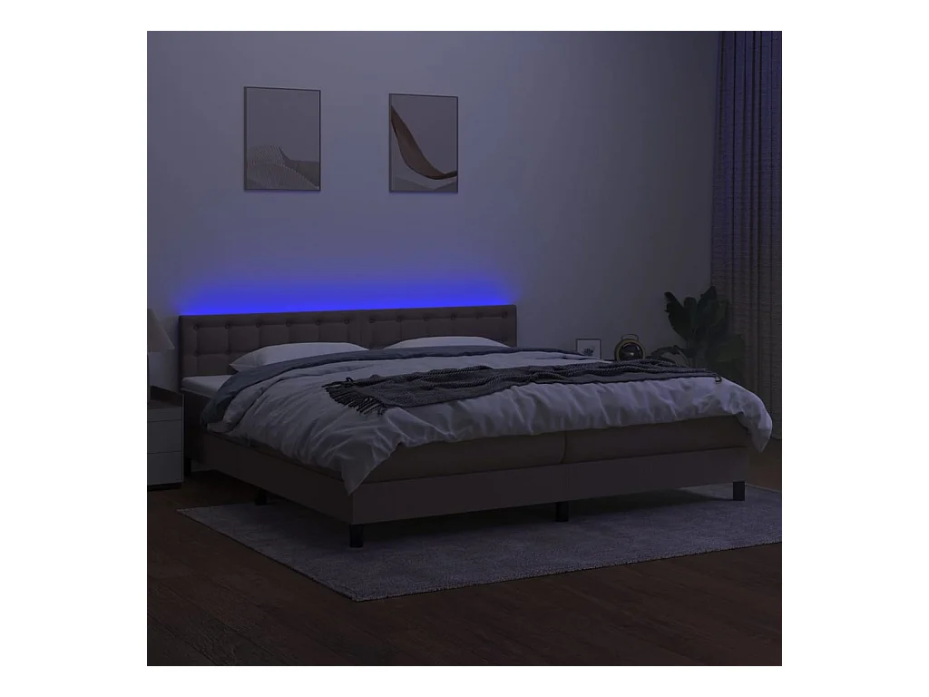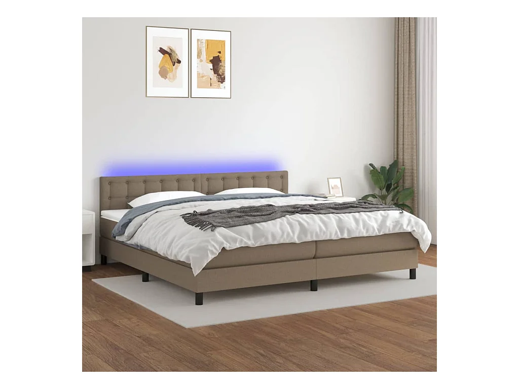 Sommier à lattes de lit et matelas et LED Taupe 200x200 Tissu