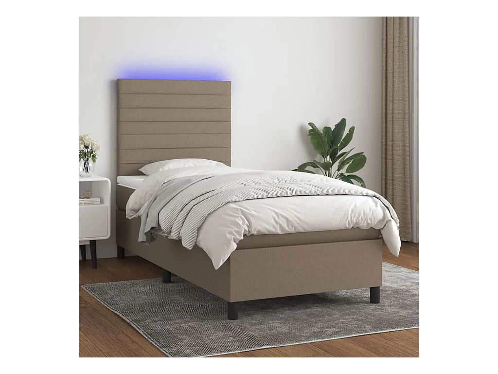 Sommier à lattes de lit et matelas et LED Taupe 80x200 Tissu