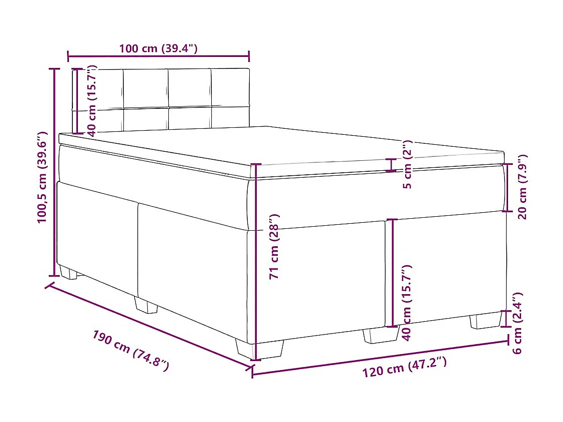 Sommier à lattes de lit et matelas gris clair 120x190 cm tissu