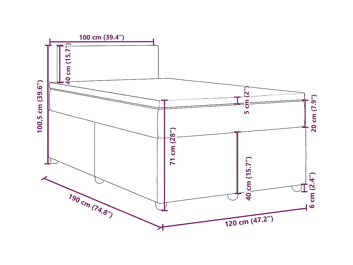 Sommier à lattes de lit et matelas gris clair 120x190 cm tissu