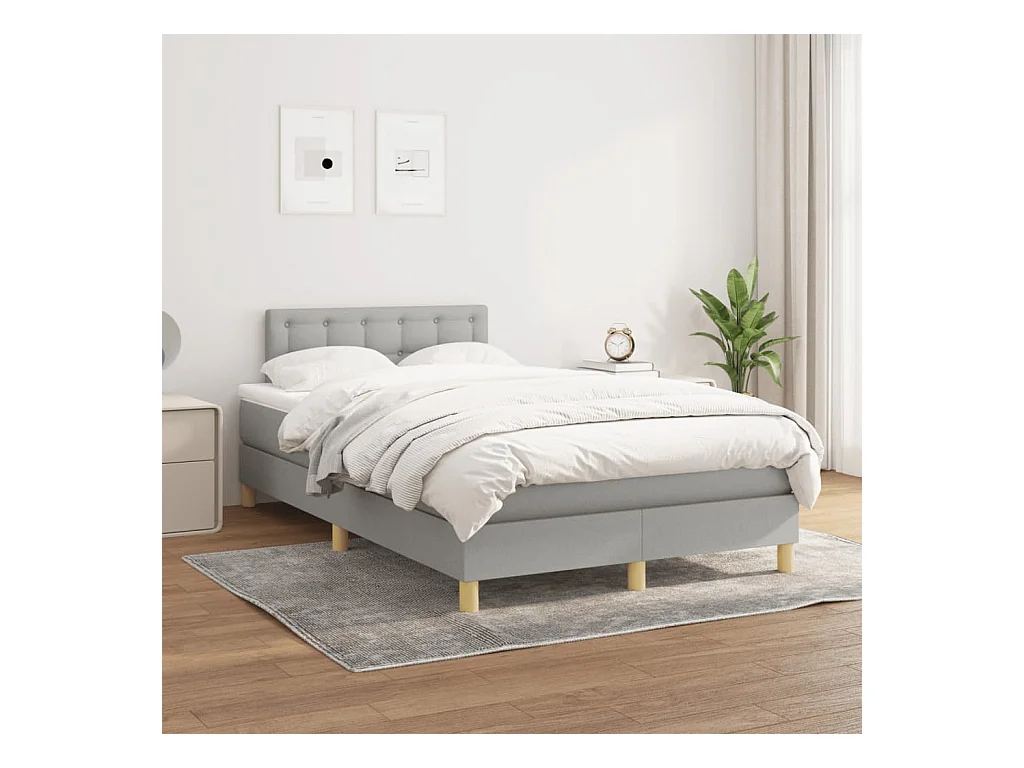 Sommier à lattes de lit et matelas gris clair 120x190 tissu